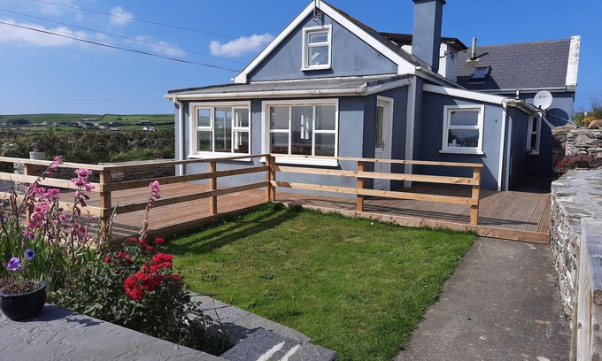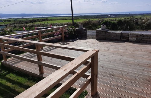 Deceptively spacious country house in stunning location, surrounded by green pastures, grazing cattle and beautiful country roads. 5 minutes from Ireland's most scenic outdoor attraction - The Cliffs of Moher. Each bedroom has a private bathroom. Upstairs bathroom contains a large bath-tub. Living-room contains a 55 inch TV with 50 TV Channels, free Netflix and Youtube. High-speed wireless Internet throughout house. Sunroom/Dining-room has sweeping views of Liscannor Bay, Atlantic Ocean and the back of the Cliffs of Moher. Outdoor wooden terrace area with barbeque. Two garden areas and large car-park.