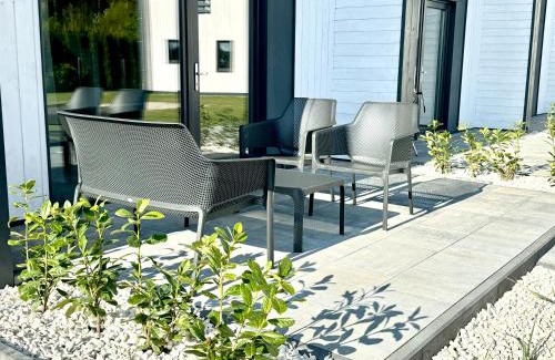 Located in Grzybowo, a 18-minute walk from Grzybowo Beach and 3.9 miles from Kołobrzeg Railway Station, Baltic Atelier domki nad morzem provides accommodations with free WiFi, air conditioning and access to a garden. The lodge provides guests with a terrace, garden views, a seating area, a flat-screen TV, a fully equipped kitchen with a fridge and a dishwasher, and a private bathroom with shower and a hairdryer. A stovetop is also provided, as well as a coffee machine and an electric tea pot. If you would like to discover the area, cycling is possible nearby. Kolberg Pier is 4.1 miles from Baltic Atelier domki nad morzem, while Kołobrzeg Lighthouse is 4.2 miles away. Solidarity Szczecin-Goleniów Airport is 65 miles from the property.