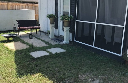 Just minutes to the beach ! It’s like you have a little piece of paradise, sleeps four comfortably. Large screen TV in living room and bedroom. 10x20 screened in porch with plenty of comfortable patio furniture very fiesta at night with all the hanging lights. Large sparkling clean private swimming pool.. Weber charcoal grill available off of the large deck. Located in a quiet area with front door parking Close to the beach, zoo and restaurants. This place is clean as a whistle!