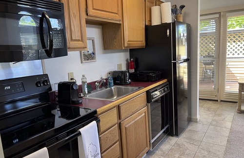 This one-bedroom efficiency condo is located at ground level for easy access and has the best location of any property on Mount Desert Island! You will be able to reach most eastern MDI hiking locations in Acadia National Park within 15 minutes from this downtown Bar Harbor location. When you return home after a day of hiking, you can park in your own off-street parking spot directly in front of your condo... and walk virtually anywhere in The village of Bar Harbor in 10 minutes! This is crucial because ANP has become one of the highest demand locations in the United States: Without dedicated parking it is near impossible to visit the village or dine at one of our many restaurants. Alternately you can bike to the park with the fully charged eBikes and skip the traffic congestion entirely!