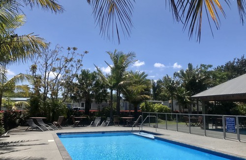 Barbs place offers an easy base in which to enjoy all Mangawhai has to offer. Just a short stroll to Bennett’s for your morning coffee or the village markets, Dunes, and the estuary. Located in a quiet location at the back of Mangawhai Park the bach has a large covered deck, parking for two vehicles, comfortable queen and double beds, great shower pressure, wifi and heat pump. Guests have access to the heated pool and barbecue area.