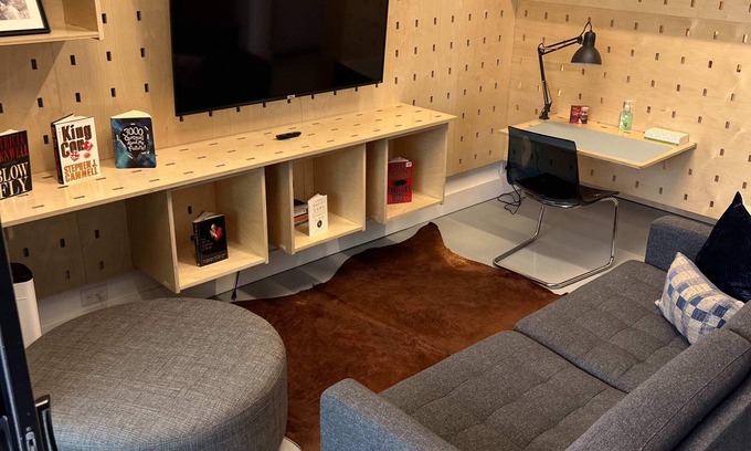 There is also a smaller desk area that provides a great laptop work area. There is a 55" 4K Smart TV located in the living area on the first level. There is a washer and dryer in the unit with enough detergent for a few loads. The unit features a custom designed pegboard system that allows longer term guests to change their storage space as their creativity and needs change. There are concrete floors on the first level with a painted wood floor in the loft reminiscent of the painted front porches of the homes in the local historic neighborhoods. There are custom designed metal and Polgal slider closet doors. Polgal, commonly known as 'green house material', provides a semi opaque cover and when back lit creates a unique glow...these are a modern take on traditional Japanese slider doors and lanterns. Kitchen counter tops are a restaurant style stainless steel with a unique marine edge that keeps food prep and spills from running off the surface. The darker counter surfaces in the kitchen and bathroom are 'paper stone', a unique recycled paper product that is impervious to water. The building was newly constructed and finished in the Spring of 2020 by award winning developer and neighborhood resident Christian Chernock. Christian is known for creating highly unique boutique style apartments and homes that depart from what is typically seen in apartment living. His spaces are highly sought after and are an inspiring experience to see.