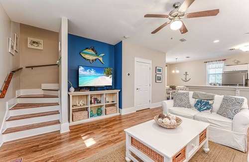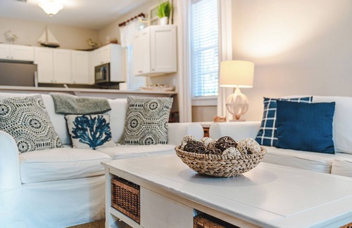 • Step inside to the coastal inspired open floor plan. The entire 1st floor has been redone following Hurricane Michael. The theme is beachy charm, clean and comfortable! The living area includes a 50” Smart flat screen TV. Free cable and WIFI are provided.