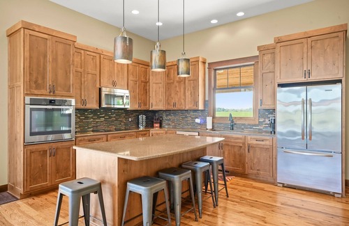 Big Sky Barnhouse...Where historic meets extraordinary. 16+ guests, 5 bedrooms, 4800 sqft of amenities galore. Play a round of 18 holes on a premier course at the Golf Simulator, or grab your putter and hit the 5 hole mini golf course. Custom basement bar, pool table, darts, 7 arcade machines, and a bunk room with a UMichigan Slide. In the spacious 3 acre backyard you will find a hexagon pergola firepit, hot tub under a covered pergola with a built in bar, and outdoor dining next to the grill.