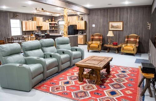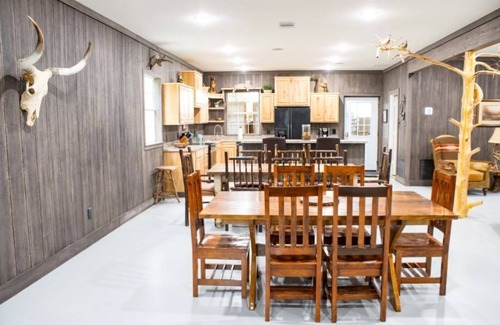 Country retreat located on a quail farm located just 20 minutes from the heart of downtown Waxahachie & 25 minutes from the Texas Motorplex. Quail hunts are offered on location during hunting season. There are 6 bedrooms with their own private bathrooms located on the property. Perfect for a large family get away. Fully stocked kitchen with 2 dining tables that offers enough seating for 12 plus 3 bar stools. Shuffle board & ping pong table located in room with kitchen, along with two big screen televisions.