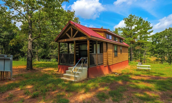 4.9 stars with over 300 reviews on AirBnb. Located directly across the street from Barnwell Mountain Recreation Area. Cute and comfortable 1-bedroom cabin w/ a loft. Nestled in a peaceful setting, guests can unwind in the cozy living room or enjoy the tremendous outdoor space. With amenities like AC, WiFi, and a washing machine, convenience is at your fingertips. Kickback, relax, and enjoy everything BMRA, Gilmer, and our cabin has to offer.