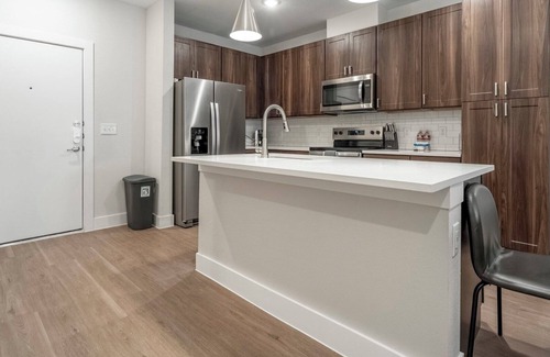 As you step inside, you'll find a bright and inviting space featuring a cozy living area with plush seating and a smart TV for your entertainment. The modern kitchen is fully equipped with high-end appliances, cookware, and all the essentials, making it easy to prepare a delicious meal or enjoy your morning coffee. The bedroom boasts a dreamy, comfortable bed with premium linens, ensuring a restful night's sleep. For your convenience, the apartment includes an in-unit washer and dryer, allowing you to pack light and stay fresh throughout your trip. High-speed Wi-Fi keeps you connected, whether you're working remotely or streaming your favorite shows.