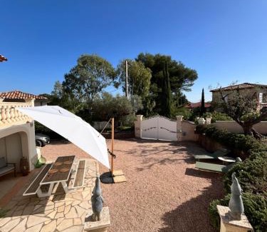 A recently renovated apartment, Bas de Villa le Dolce offers accommodations in La Farlède. This property offers a private pool, free Wifi, and free private parking. The accommodation offers a concierge service and bicycle parking for guests. Offering a terrace and garden views, the spacious apartment includes 2 bedrooms, a living room, flat-screen TV, an equipped kitchen, and 1 bathroom with a shower. Towels and bed linen are offered in the apartment. The property has an outdoor dining area. Guests can relax in the garden at the property. Toulon Train Station is 8.3 miles from the apartment, while Zénith Oméga Toulon is 8.6 miles from the property. Toulon - Hyeres Airport is 10 miles away.