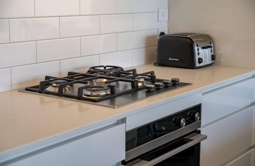 The generous open-plan kitchen and dining area offers plenty of space for up to 6 guests, creating the perfect spot to cook and enjoy meals together.