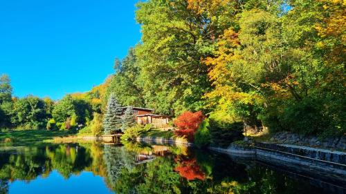 Basen Przesieka - drewniany dom z dużym stawem offers accommodations in Przesieka, 11 miles from Szklarska Poreba Bus Station and 12 miles from Death Turn. The property is around 6.7 miles from Wang Church, 10 miles from Western City, and 11 miles from Dinopark. There's an outdoor fireplace and guests can use free Wifi and free private parking. The vacation home consists of 4 bedrooms, a fully equipped kitchen, and 2 bathrooms. The accommodation has a fireplace. Guests at the vacation home can enjoy cycling nearby, or make the most of the garden. Izerska Railway is 12 miles from Basen Przesieka - drewniany dom z dużym stawem, while Szklarki Waterfall is 13 miles away. Copernicus Wrocław Airport is 70 miles from the property.