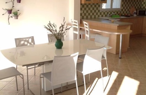 The exterior consists of 3 patio tables for 4 persons, 9 sunbathing, barbecue grill and griddle gas.