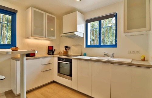 On the garden level, a lounge with a 140 x 190 sofa bed, satellite TV with foreign channels, free Wi-Fi. A fully equipped American kitchen with, among other things, a hob, oven, microwave, dishwasher, fridge freezer. Separate WC.