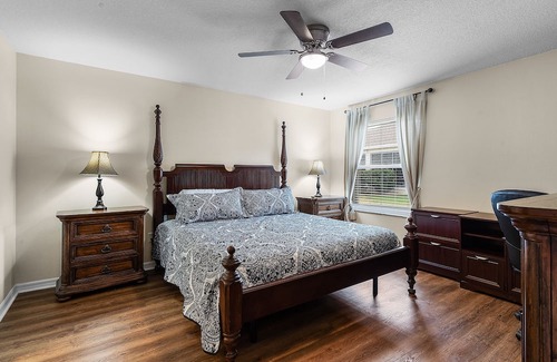 Escape to luxury living in The Villages, FL, with this stunning 2-bedroom, 2-bathroom rental in the sought-after Village of Polo Ridge. Step inside to discover a world of comfort and style, with walk-in closets in both bedrooms. The master suite boasts a regal king-sized bed, while the guest room offers a plush queen bed, both featuring power adjustments for your convenience. Enjoy the beauty of granite counters in the kitchen and baths, along with an upgraded master bath for added indulgence. Relax and unwind in the glassed and screened lanai, or gather around the heated fireplace in the inviting family room. With its thoughtful design and upscale amenities, including a convenient desk in the master, this Berch model home promises a lifestyle of sophistication and relaxation. Don't miss your chance to experience the epitome of elegance in The Villages!