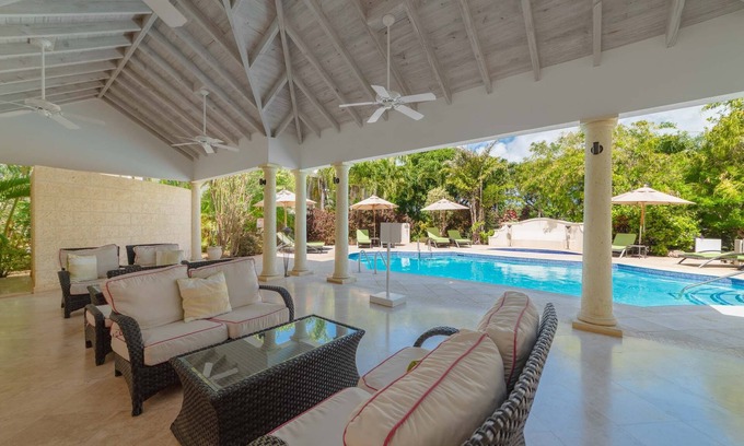 This luxury villa in Barbados offers a beautiful blend of classic architecture and contemporary comfort, nestled within nearly four acres of beautifully maintained tropical grounds. The three-bedroom house spans over 2,300 square feet of sophisticated interior space, designed for seamless indoor-outdoor living, perfect for families looking for a Barbados vacation rental in a secure, gated community.