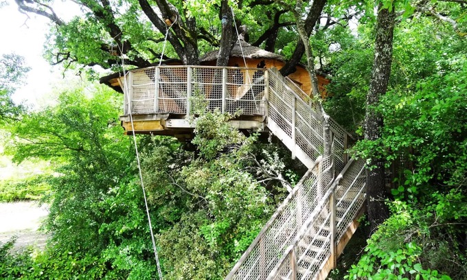 Accommodation: Our cabin is perched in an old oak, with a beautiful view of the meadow and the river below. In the middle of nature, it conveys the benefits: the branches cross the Cabana and bring you the serenity and happiness of the return to childhood.Price per night for 2 persons