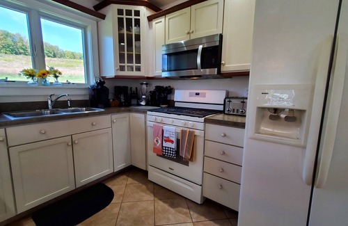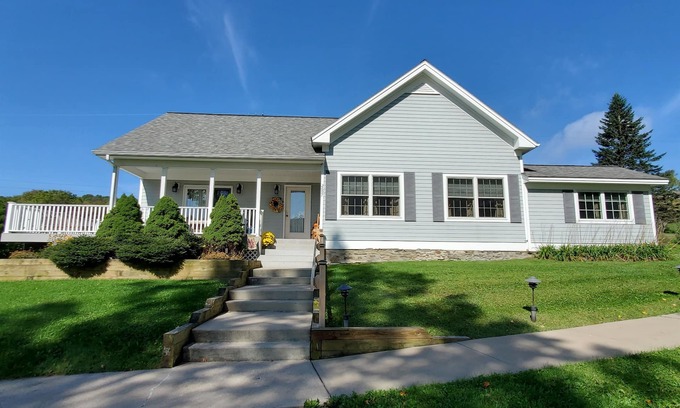 Bavarian Farm Schoolhouse - Choose this exquisite home for your family's visit to Cooperstown. The main frame, now covered, was a one-room schoolhouse that stood on this site. Built in the 1840’s, it was used as a school until the 1940’s. This home has been totally rebuilt. Two additions have been added to the original frame. Bavarian Farm Schoolhouse welcomes you with an open floor plan. Lots of natural light brightens the great room which includes living, dining and kitchen.