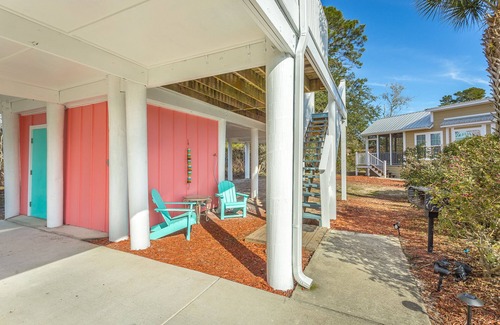 Bay Bliss is a lovely 1 bedroom, 1 bathroom stilted beach cottage located less than 5 minute walk from Carrabelle Beach. With 2 queen beds in the master, this unit will sleep 4 maximum. This home boasts cathedral ceilings, hardwood floors, well stocked kitchen, and a deluxe spa styled bathroom with double sinks, extra large walk in shower, and deep tub with dial temperature controls. Stylish, comfy furnishings throughout the unit make you feel right at home! There are 2 televisions, one in the living room and one in the bedroom. Enjoy the sunset on the spacious deck which has a partial water view. There is also a park style charcoal grill available as well. Perfect for cooking up your fresh catch of the day. Check out the historic Carrabelle Lighthouse and Museum less than 1 mile away or explore the Carrabelle Beach which is only a 2 block walk and tends to be less crowded than other local public beaches it is also pet friendly and handicap accessible.