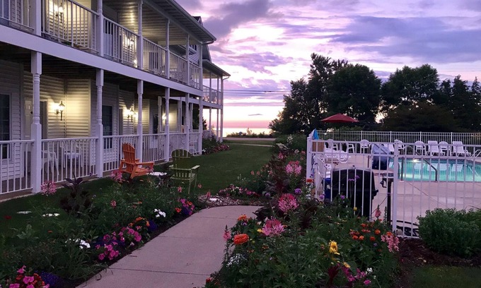 A seasonal outdoor pool and a hot tub are on site. Other recreational amenities include a private beach.