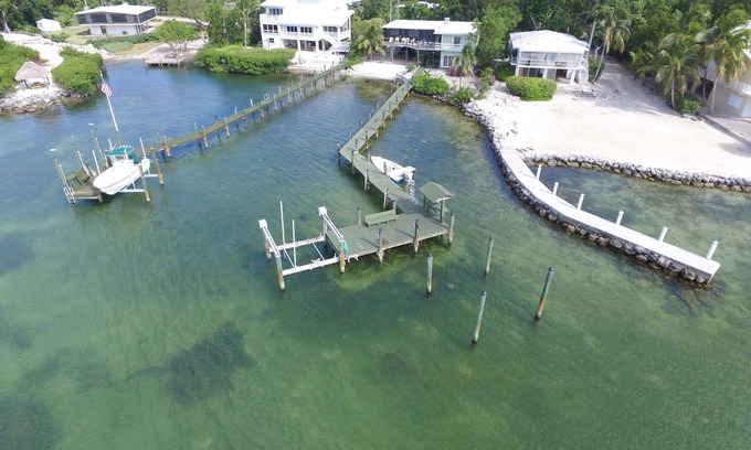 Located in Islamorada, the fishing capital of the world, this house is tucked away in a quite neighborhood on the bay side. The backyard consists of a private beach, tiki hut, an outdoor kitchen with a cook top, oven and gas bbq. In addition to the bar seating there is a full sized out door dining room table and outdoor living room set up for watching the game on the big screen. The house has a private pier with magnificent views of the Florida bay. There is ample room and depth to dock several boats in case you have any company. You will experience beautiful sunsets right off the end of the dock with a nice cool ocean breeze. During the day grab a rod and reel and toss in a line right off the dock, or jump in and grab a lobster nestled in the rocks below.