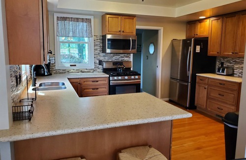 Some of the home's amenities include: 55" smart Roku TV with DVD player in living room, extra smart TVs in 2 of the bedrooms, beautiful electric fireplace in living room, basic cable, WiFi, central air-conditioning (from June 1 to September 30), natural gas furnace/heat, games/puzzles, stove, refrigerator with ice maker, dishwasher, Keurig coffee maker (12-cup style and k-cup style), microwave oven, blender, air popcorn popper, laundry washer and dryer, well-stocked with dishes and utensils and so much more.