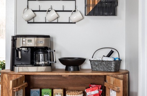 * Coffee station includes a DeLonghi all-in-one express + drip coffee maker, and station is stocked with coffee, tea and extras!