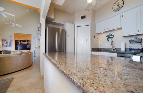 A fisherman’s dream rental (perfect for tournament-goers!), this second-floor 4BR/2BA South Padre Island condo includes a private boat slip and gated fishing dock with night lights and a cleaning station.