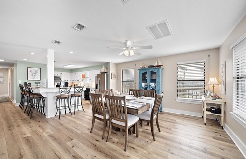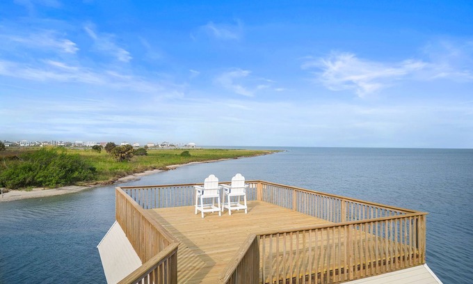 Welcome to Bay Vista, a beautiful bayfront retreat located in the peaceful Terramar Beach community of Galveston, Texas. This inviting 2,650 sq ft home is perfectly positioned where the canal meets Galveston Bay, offering stunning waterfront views, easy access to boating and fishing, and the ideal setting for family-friendly outdoor living. With 4 bedrooms, 3.5 bathrooms, and accommodations for up to 14 guests, Bay Vista is a true gem for water lovers and sunset seekers alike.