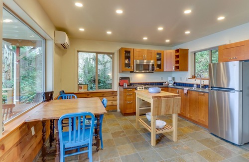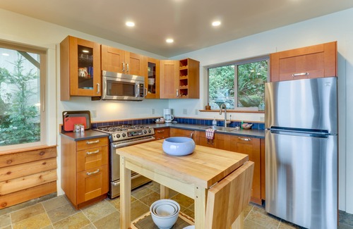 Just a short walk down the stairs at the back of the home is the beach. On the beach, you can dig for clams or fish for salmon in winter. Several miles of beachcombing is at your doorstep – watch for bald eagles soaring above. Less than nine miles from home is Anderson Lake State Park, where you can hike, bike, and walk the trails around the lake, and less than 15 miles away is Marrowstone Point, with a historical lighthouse and beachfront to walk along. The home is close to Olympic National Park, with many hiking and sightseeing experiences.
