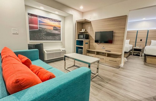 A business center, laundry facilities, and a 24-hour front desk are available at this smoke-free hotel. Free continental breakfast, free WiFi in public areas, and free self parking are also provided. Additionally, a TV in a common area, RV/bus/truck parking, and multilingual staff assistance are onsite.