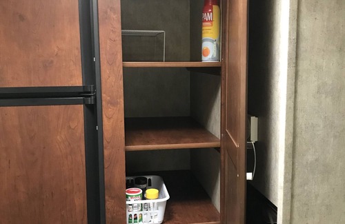 Fully stocked kitchen including paper plates/bowls, paper towels, plastic utensils, solo cups, coffee cups to go, BBQ utensils, cooking/serving utensils, assorted steak knives, pots, aluminum trays and a basic first aid kit. All cabinets are labeled for your convenience. Coffee maker, coffee (Dark Roast), filters, sugar, creamer, artificial sweetener. Condiments and basic spices. Kitchen soap, trash bags, bodywash, shampoo, conditioner, and toilet paper. All bed linens, kitchen, and bath towels. Daily towel service is available for an extra fee. Outdoor kitchen with cook top, Fry Daddy, park style BBQ pit with lid, charcoal electric starter and coal/ash can. Four chairs, table, fire ring and fan, which is in the front storage compartment for your use to help keep you cooler in the summer months and to help keep the gnats and mosquitos at bay. Shared fish cleaning table on the dock directly across the street from Camp Cocahoe. Three crab nets in the front storage compartment of the camper.