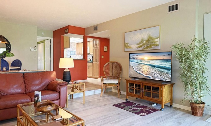 • Open living/dining area with large flat-screen TV (cable & streaming)