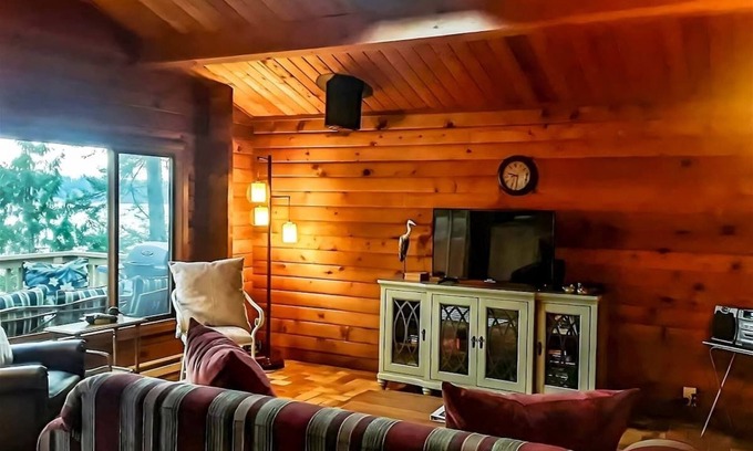 One of our most popular vacation homes. This log home is nestled in a grove of cedars right on the edge of Sequim Bay. Watch the bird activity and sail boats floating by or better yet take the short trail to the water's edge. The last bit before the beach is currently not accessible, keep posted to when we get this access corrected. This cabin is situated a few steps from the Discovery Trail; you can walk or bring your bikes. The trail is very close to the cabin, just a little ways down the road and you will see the entrance. The trail goes east as far as 7 Cedars Casino or west beyond Port Angeles.