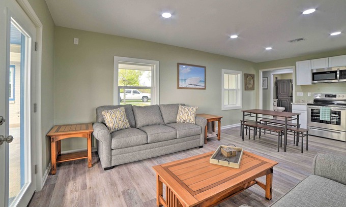 Waterfront serenity awaits at this fully modernized vacation rental! Complete with a gas grill, bright and airy living spaces, and a Texas-sized backyard, this 2-bedroom, 1-bathroom home has everything you need for a blissful retreat. Start your mornings off right by watching the sunrise on the covered patio, then head outside to enjoy swimming in the shared pool, boating on Copano Bay, fishing off the city’s pier, or exploring Rockport’s buzzing downtown scene - just 20 miles away!