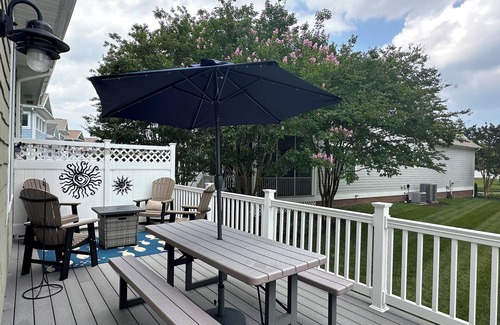 Home is equipped with a total of four TVs, gas fire pit, gas grill, and WiFi. This home also offers a fully equipped kitchen w/breakfast bar seating, washer/dryer, wagon, beach toys and chairs.