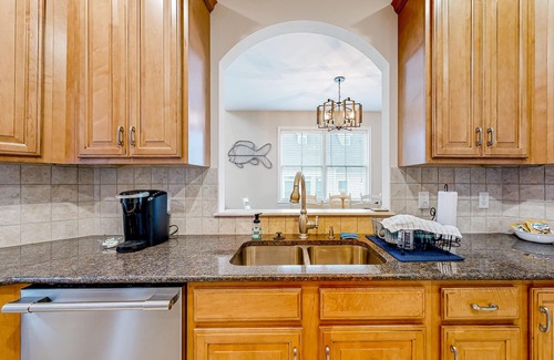 At the home itself, spend mornings sipping coffee in the enclosed sunroom, then step inside to make some breakfast when hunger strikes. The modern, full kitchen opens onto the dining area and living room, making it easy to gather as a group during meal prep. Grab a seat at the large dining table, then pop the dishes in the dishwasher for easy cleanup.