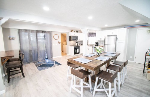 Dining Table seats 8, bar seating, large kitchen new cabinets, pantry closets in every room, office space with desk in primary bedroom