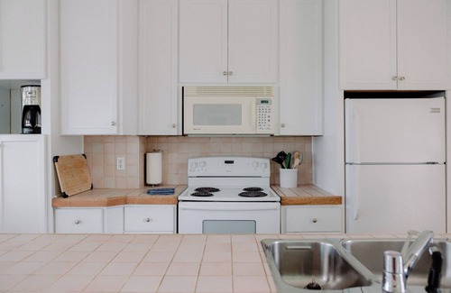 – Stove, oven, microwave, coffee maker (drip), full size fridge, blender, toaster, crockpot, kitchen utensils, pots, pans, dishes, dishwasher
