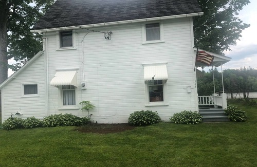 Bayview is a small two story cottage right on the shore of Goodyear Lake. Beautiful views of the lake morning noon and night. Bayview has two bedrooms, one with a king bed and a sleeping porch with two twins. One full bath upstairs and a half bath on the main floor. heat if needed is supplied by a gas Franklin stove centrally located in the living room. The enclosed porch is where the TV is and will be where you spend your leisure time looking out over the lake. Have a cookout after taking a swim. Bayview has a large floating dock and Kayak rentals are located near by. Cooperstown Dreams Park is located 9.5 miles away on the same road so its an easy 13 minute commute. All Star Village is even closer. There is also a large mowed field perfect for Baseball or Soccer. We also rent Pontoon Boats by the week that you can keep right at the dock or bring your own boat.