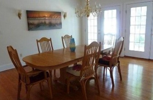 Nestled among tall pines, Bayview Point is a contemporary French Provincial with more than the comforts of home. Large enough for your family and a few friends too! From the fabulous great room with it's soaring ceiling and walls of glass to the impressive gourmet kitchen with granite counter tops and all the tools available to create your favorite dishes. The first floor Master Bedroom is a private oasis featuring a King bed, Master bath and comfortable sitting area to read the latest best seller. Let the kids enjoy their own space right off the great room with enough seating for 8 and large flat screen TV. There are 4 bedrooms on the second level. The second King bedroom offers an adjoining room with a trundle bed and its own mini kitchen. Make a pot of your favorite coffee and walk onto the covered balcony overlooking the bay. The 3 additional bedrooms and 2 full bathrooms complete the accommodations. The house also offers access to the community pool located within Bay Ridge.