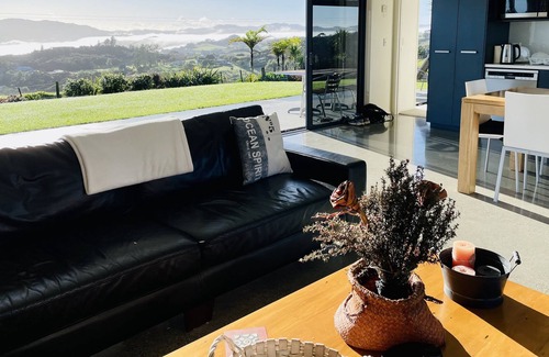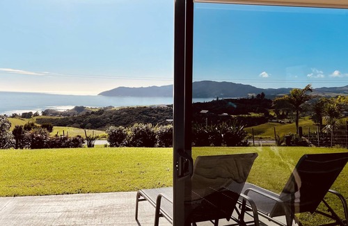 Sitting on a ridge above Coopers Beach, commanding views of all Doubtless Bay, is Bayview Retreat. This very contemporary home features seven metres of sliding glass door, opening front and back to reveal unimpeded views. To the front - expansive coastal views of Doubtless Bay. To the back - glorious farmland and hills rolling to the horizon.