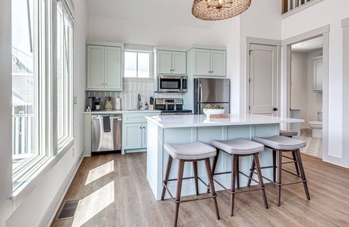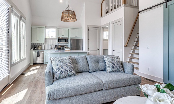Wake up to a lake view from this stunning vacation space in Carlton Landing. This beautifully designed apartment home offers upscale finishes, designer touches, and flexible sleeping arrangements. You’ll enjoy the expansive lake view from the kitchen, living room and the enormous porch. Guests have designated, covered parking with quick stair access to the space, making it feel very private. The location offers quick mobility to all the amazing amenities this walkable, resort-style town has to offer. The closest attractions are the lake side hiking trails, tennis court, nature playground and Tower Court Pool.