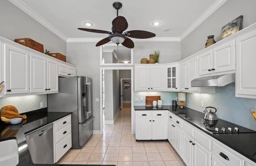 Welcome to Seaside Serenity, a luxurious, professionally designed retreat perfect for families and groups. Located on a quiet cul-de-sac, this spacious home offers the best of island time living, with airy interiors and modern coastal decor.