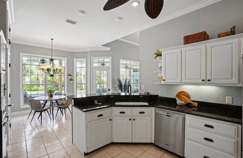 Welcome to Seaside Serenity, where island time is the only time that matters. Nestled on a quiet cul-de-sac, this spacious, professionally designed retreat is perfect for slowing down and soaking up the sun. Just two blocks from the soft white sand, you can stroll to the beach or take the 2 golf carts provided for easy hauling. Lounge by the private heated pool in the large backyard, complete with seating, sunning areas, a grill, and outdoor fans.