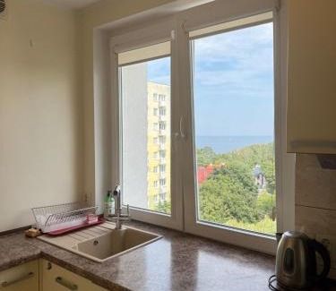 Beach Apartment Sea View offers accommodations in Gdynia, 1.4 miles from Batory Shopping Center and 1.1 miles from Marina Gdynia. The property is around 1.2 miles from Błyskawica Museum Ship, 1.7 miles from Planetarium, and 1.7 miles from Gdynia Central Railway Station. Free Wifi is available throughout the property and Redłowska Beach is a 10-minute walk away. Featuring a balcony and sea views, the apartment includes 1 bedroom, a living room, cable flat-screen TV, an equipped kitchen, and 1 bathroom with a shower. Towels and bed linen are available in the apartment. For added privacy, the accommodation features a private entrance. Popular points of interest near the apartment include Świętojańska Street, Navy Museum, and Kosciuszki Square. Gdańsk Lech Wałęsa Airport is 13 miles from the property.