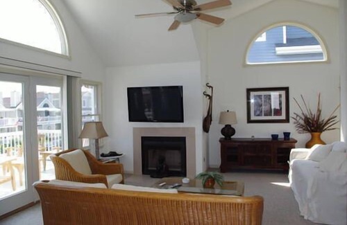 Beach block house on prime St. Charles Street location, with view of the ocean from the front deck. Elegantly decorated home with all the touches to make your stay comfortable: 3 TVs, great cedar wood outdoor shower, gas BBQ grill, newly renovated kitchen and bathrooms. Sixth house from the beach gives you beach front benefits with privacy from curious boardwalkers and only steps from Brown s famous donuts.