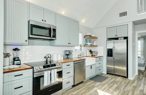 This classy and charming coastal farmhouse style home cottage has an unobstructed view of the Gulf in which you can enjoy the pelicans diving for breakfast and periodically dolphins at play. It's a great spot to spend your vacation time!