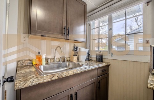 Inside, unwind in the separate living area with a comfortable futon for lounging and a queen-size bed that offers restful sleep for two. The well-equipped kitchen comes with all the essentials, including dishes, utensils, and cooking and bakeware, making it easy to prepare home-cooked meals. Enjoy your meals at the quaint dining table, creating the perfect space for intimate dinners or casual snacks.