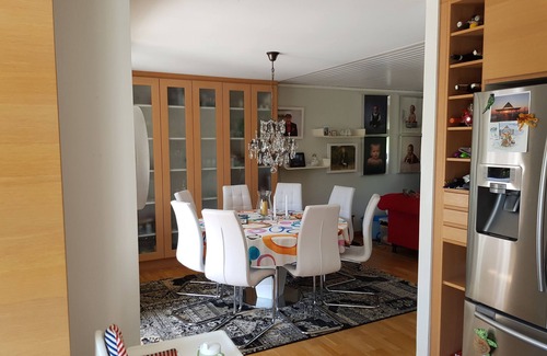 Well maintained villa for rent August 10-20, walking distance to lovely sandy beach. Close to Åhus harbor with many cozy eateries. The house consists of 5 bedrooms, 35 sqm terrace with exit from the kitchen in a southwest location = sun all day. Genuine environment, close to forest walks in the lovely Kronos forest, also nice jogging trails. Quietly located, no roads in any plot boundary, embedded in pine forest, securely located on a hill, terraced villa.