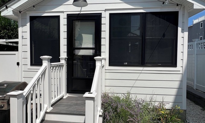 1 bedroom cottage 3 houses from the beach. Located at the rear of our main house. Can accommodate 3 (maximum 2 Adults and 1 child/teenager). Private patio area and outdoor shower. Walk to shops, restaurants, ice cream, mini golf, liquor store, coffee and bagels. Two TVs with Roku, refrigerator/freezer, microwave, toaster oven, Keurig, dishwasher, small all-in-one washer/dryer. AC. 2 Beach Badges. 280 sq ft.