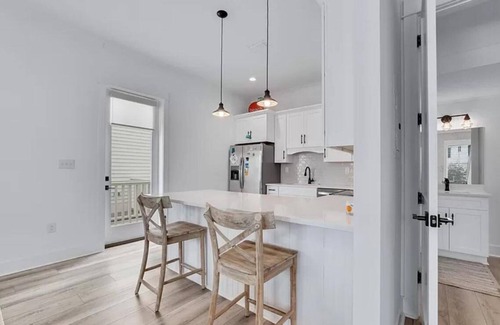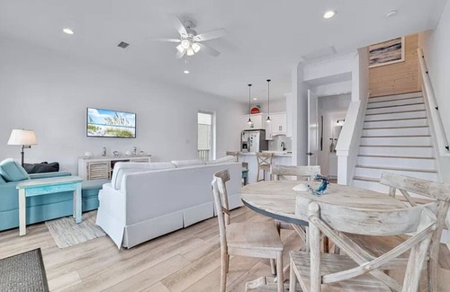 Step into your dream beach retreat nestled in the charming Villages of Tannin! This delightful 2-bedroom, 2.5-bath luxury home comfortably accommodates up to 8 guests, making it the perfect getaway for families or friends seeking sun and surf. Imagine waking up just a stone's throw from the stunning beach—deeded access is conveniently located right across the street, complete with a safe red light crosswalk. Plus, the area is buzzing with golf carts, adding a fun, laid-back vibe to your stay!